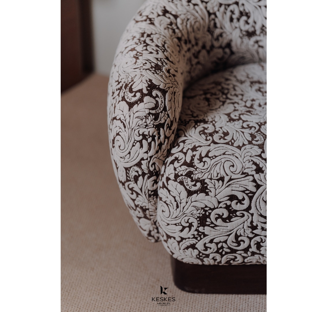 Le fauteuil archipel combine design raffiné et confort. Fabriqué à partir de bois de hêtre étuvé, il peut être personnalisé selon vos préférences en termes de teinte et de tissu, s’adaptant parfaitement à votre style d’intérieur.